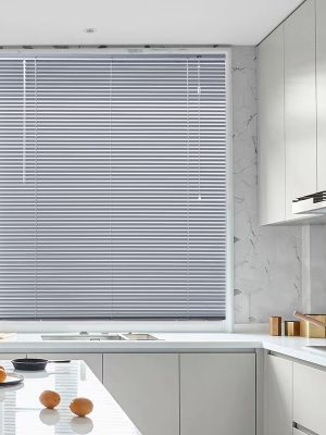 转棒式铝百叶 优质铝合金型材 ,高强度分子,持久耐用,韧性好,弯曲按压后会自动灰色,不变形。 易清洁更方便,防水防霉 更便于清洁厨房也适用 -